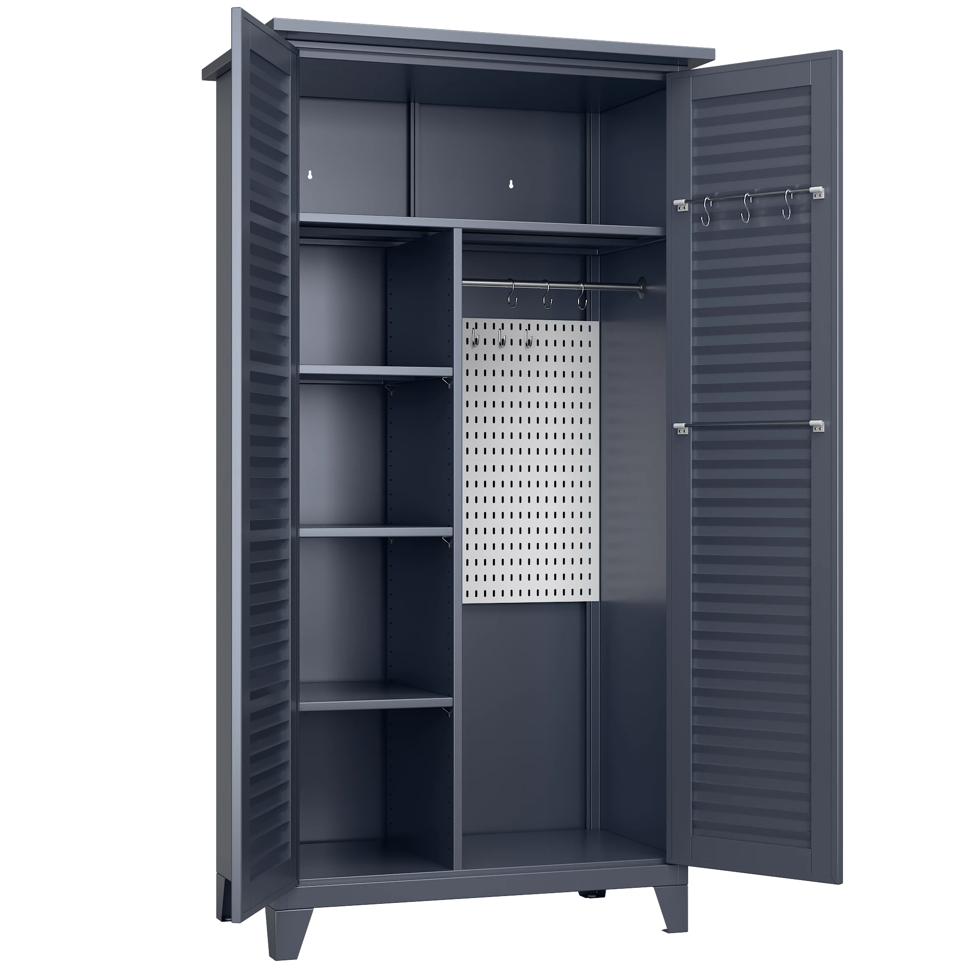 Gabinete exterior 6 separaciones, barra y tablero para colgar 185x90x50 cm - OCC-8